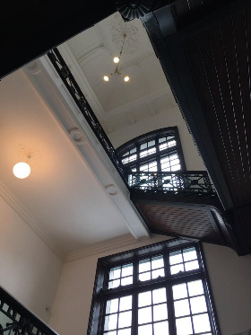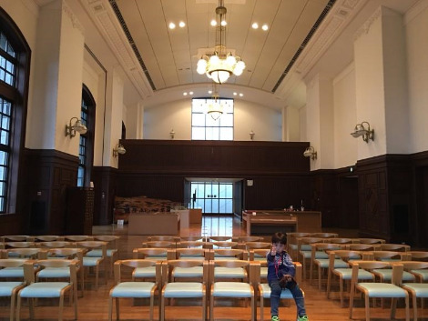 이 클래식한 도서관을 들어가기 위해선 모던한 유리상자 같은 구조물을 통과해야 했다. 일본 건축의 대가 안도 타다오(あんどうただお, 1941~)의 손길이 닿은 것이다. 도서관의 첫인상은 중후하고 차분했다. 그 분위기를 해인도 느꼈는지 목소리와 몸놀림이 작아졌다. 가장 먼저 눈에 띄는 건 1층부터 3층까지 뚫린 계단이다. 그 끝에 100세가 넘은 샹들리에가 과거에서 현대까지를 영롱하게 조명하고 있었다. 해인이 몹시 흥미로워 했다 나무창틀이나 벽돌이나 청동과 몰딩이 100년 전의 것 것도 놀라운데 샹들리에까지! 복원과 관리에 대한 일본인들의 강한 의지를 알게 하는 산물이다. 이러한 풍경이 어린이도서관 답지 않다고 할 수도 있겠으나 오히려 이곳을 드나드는 아이들에게 역사적 가치를 어떻게 보존하고 가꾸는지 알게 하는 교육장이구나 싶어 한편 부러웠다.
