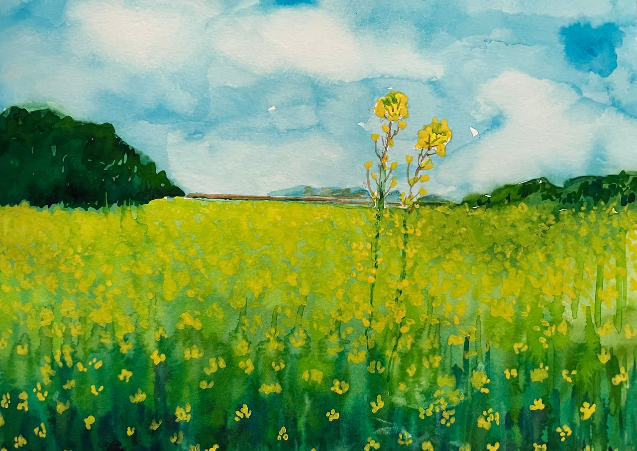 #다른느낌으로 #수채 #북한산과철로가보이는 #창릉천 #유채꽃이나를환하게해