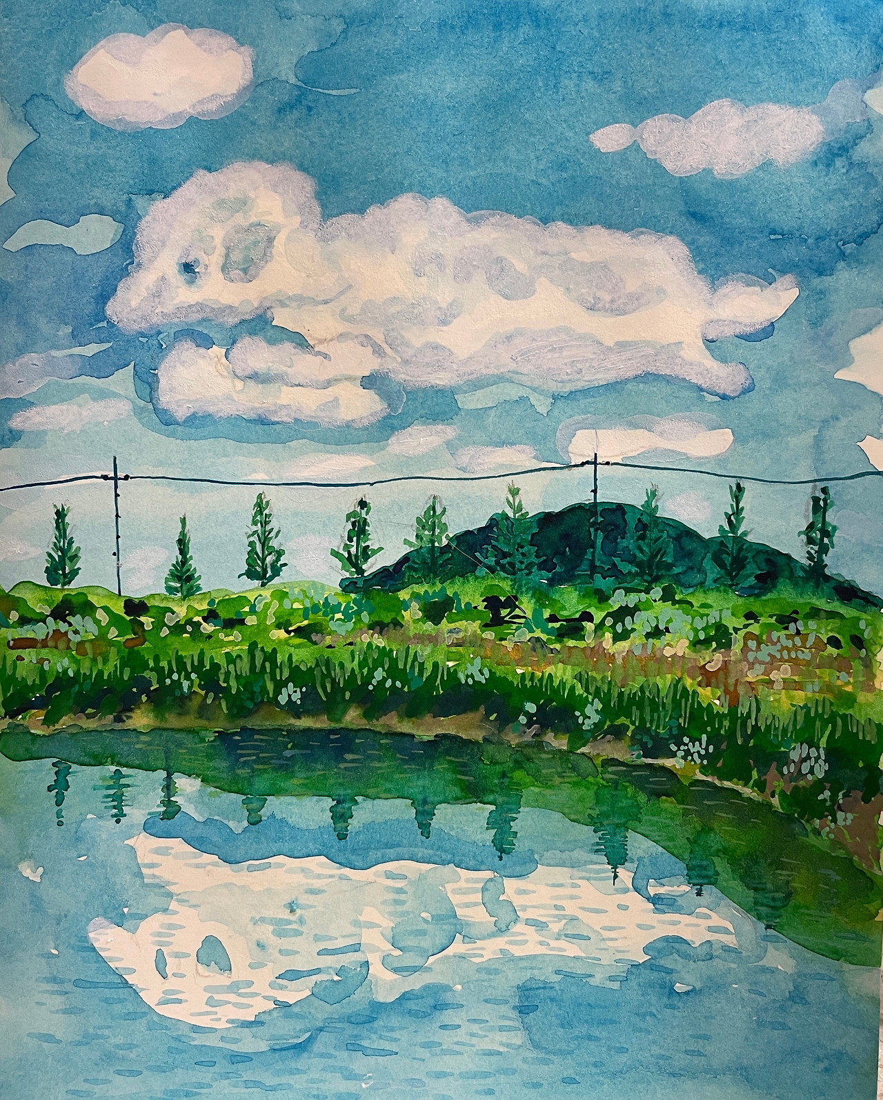 #푸들?양?아기돼지?닮은구름 #종이에 수채, 수채크레용