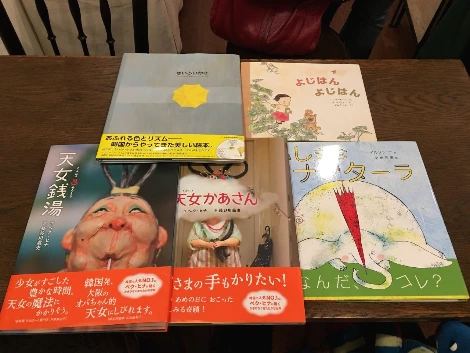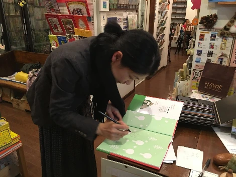 그녀가 나누어 준 그림책 이야기와 환한 웃음, 따뜻한 관심, 깊은 정성만으로도 내가 담을 수 있는 마음의 보따리는 이미 차고 넘쳤는데, 또 다시 한 아름을 더 안겨준 이가 있었다. 그림책 작가 타카하시 카즈에(高橋和枝)씨가 그랬다. 조용하고 차분한 외모에 소박한 말투, 수줍음이 많은 타카하시씨와 인사를 나누는 동안, 타네무라씨가 몇 권의 그림책을 내게 보여 주었다. 그림책들이 어찌나 작가를 닮았는지! 그 중에 <りすでんわ>는 <다람쥐 전화>라는 한글판이 있다는 얘기를 타네무라씨가 해 주었다. 타카하시씨와 함께 하는 시간이 더욱 소중하게 느껴졌다. 해인은 그녀의 그림책들 중에서 특히 <くまのクリスマス 한글판: 졸려 졸려 크리스마스>를 갖고 싶어 했고, 타카하시씨에게 싸인을 받아 구입했다. 이 책은 지금까지도 해인이 가장 좋아하는 그림책 중에 하나가 되었다.