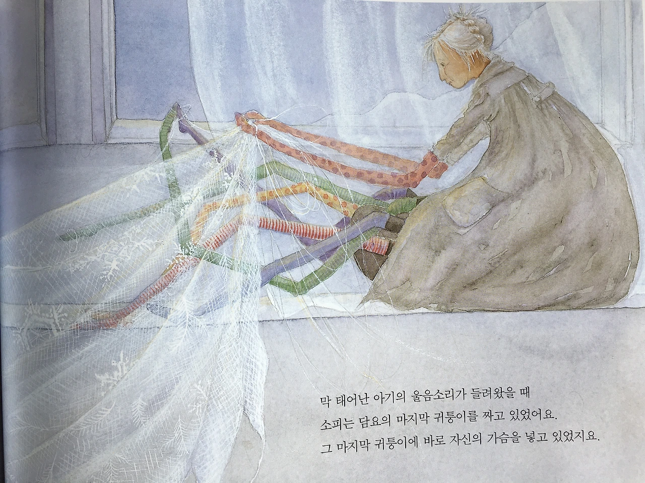 “이때쯤 되자, 거미의 세계에선 꽤 많은 시간이 흘러 소피는 할머니 거미가 되었어요. 기운이 없어진 소피는 자신에게 필요한 몇 가지를 짤 때만 빼고 대게 잠을 잤어요.”