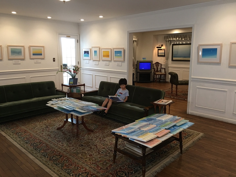 1층 갤러리에 전시된 요 쇼메이의 그림들은 그만의 특유한 화풍을 최대한 느껴볼 수 있는 그림들로 채워져 있었다. 아득한 색감과 부드러운 질감, 자연과 사람을 최소로 간결하게 그림으로써 많은 여백을 남기는 그의 그림에선 느림의 미학이 느껴졌다. 한참을 보고 있자니 마치 그림 속에 서 있는 것 같은 느낌이 들었고, ‘자연은 원래 이런 모습이었고 이러해야 한다.’는 메시지가 들려왔다. 동화 작가인 **야마세 타카시(やなせたかし)는 쇼메이의 그림을 보고 “공기를 그린다.”라고 표현했는데 이해가 되었다. 그림 속에 부는 바람이 내 옷자락을 흔드는 것 같았다. 차분하게 명상에 든다. 버려야 할 것과 잃지 말아야 할 것들, 근원적인 것들에 대한 그리움, 점점 또렷해지는 내 존재감, 아름다운 자연 속에서의 내 삶과 시간...