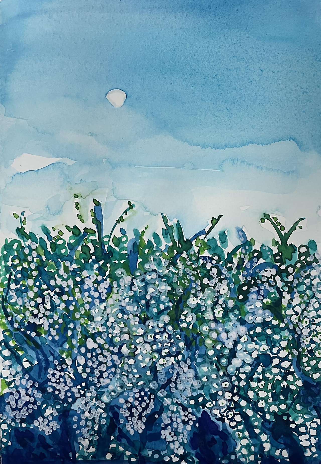 조팝나무와 꽃 그리고 낮에 나온 반달