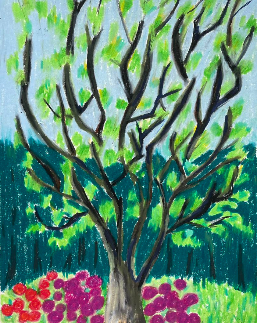 #집앞나무 #그려보라손짓해서 #국민학생시절로돌아간느낌 #생선장수아저씨를그려서우수상을받았던 #그때는왕자크레파스 #지금은카렌다쉬수채크레용