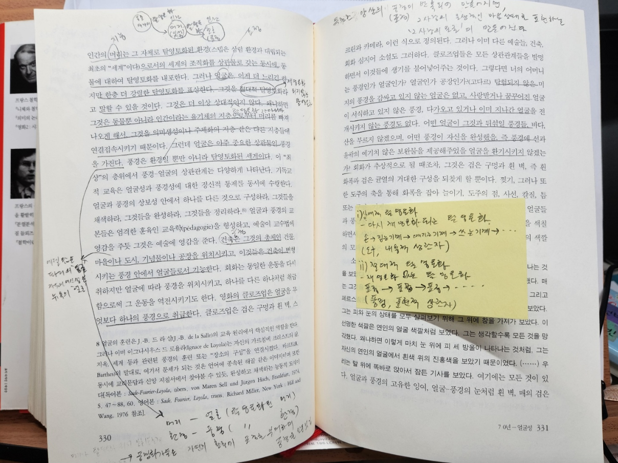 언젠가부터 스승의 책은 나의 '바이블'이 되었다. 연애가 안 풀리면 스승이 연애에 대해 쓴 책인 <철학보다 연애>를 펼친다. 삶에서 내 깜냥으로 감당하기 벅찬 일이 일어나면 언젠가 스승이 삶에서 물러서지 않으려고 고군분투했던 이야기를 쓴 <세상이 나를 몰아세울 때? 가드 올리고 도망치지 말 것!>을 펼친다. 책 뿐만 아니라 스승의 조각글도 마찬가지다. 내 삶에서 어떤 일이 일어났을 때 떠오르는 스승의 글이 있다. 글이 떠오를 때도 있고, 문장이 떠오를 때도 있다. 이미 너무 많이 읽었기에, 아니 처음 읽을 때부터 머리가 아닌 가슴으로 읽었기에 굳이 외우려고 하지 않아도 저절로 외워져버린 글과 문장이다. 그 글과 문장들이 마음에 가득 채워져 있다가 내 삶에 어떤 사건과 마주치면 마음속에서 화학작용이 일어나 튀어나오는 느낌이다. 그 화학작용이 일어났을 때 나는 내 글을 쓴다. 그 글을 쓰면 나는 어떤 다른 배치 속으로 들어가게 된다.