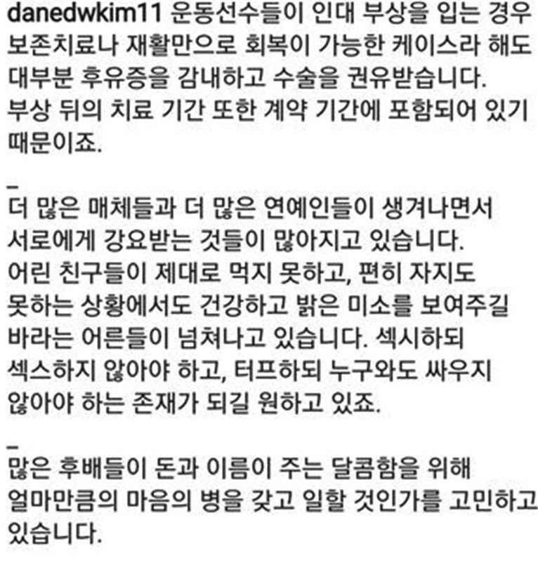 나는 현재 잇따라 일어나고 있는 연예인들의 자살도 비슷한 맥락이라고 생각한다. 그들의 자살 소식을 들을 때마다 가슴이 철렁 내려앉는다. 연예계처럼 자본주의의 야수가 날뛰는 곳이 또 어디 있겠는가. 어려서부터 '성공한 연예인'이 되는 것만이 유일한 꿈이었을 이들. 그 유일한 꿈을 위해 현재의 행복들을 모조리 희생했을 이들. 회사의 '상품'으로서 모든 것이 실적화되어 자신의 가치를 하나하나 돈으로 평가받았을 이들. 투자한 만큼 뽑아내야 한다는 압박감에 끊임없이 시달렸을 이들. 회사의 매출에 해가 되지 않도록 모든 삶을 감시당하며, '모든 이에게 사랑받는 사람'의 삶을 살아야 하는 이들. 한 번의 실수에, 한 번의 실패에 너무 쉽게 다른 '상품'에 대체당하는, 언제라도 대체 당할 수 있다는 불안에 사로잡힌 이들. 연예계를 떠나고 싶어도 지금까지 이 길만 걸어온 탓에 다른 삶을 상상조차 할 수 없는 이들. 이러한 자본주의적 압박을 초등학교, 중학교부터 견뎌온 이들. 가족조차 자신을 '돈 버는 기계'로 보기에 그 험한 정글에서 벗어날 곳이 없는 이들. 모든 연예인의 삶이 그렇진 않겠지만, 적어도 극심한 경쟁에 시달리는 아이돌들의 삶은 이렇지 않을까.
