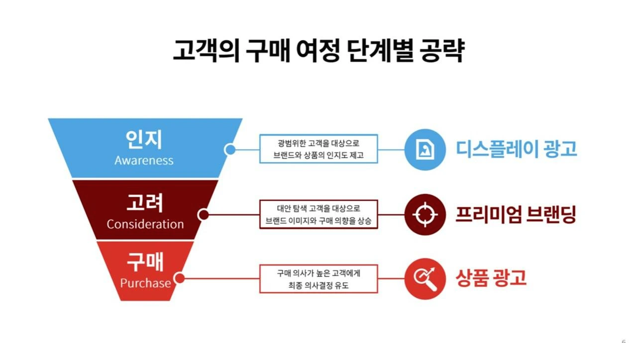 그렇기 때문에 판매자의 광고는 소비자의 구매 의사결정 과정(구매 퍼널)과 밀접하게 연관되어 있습니다.