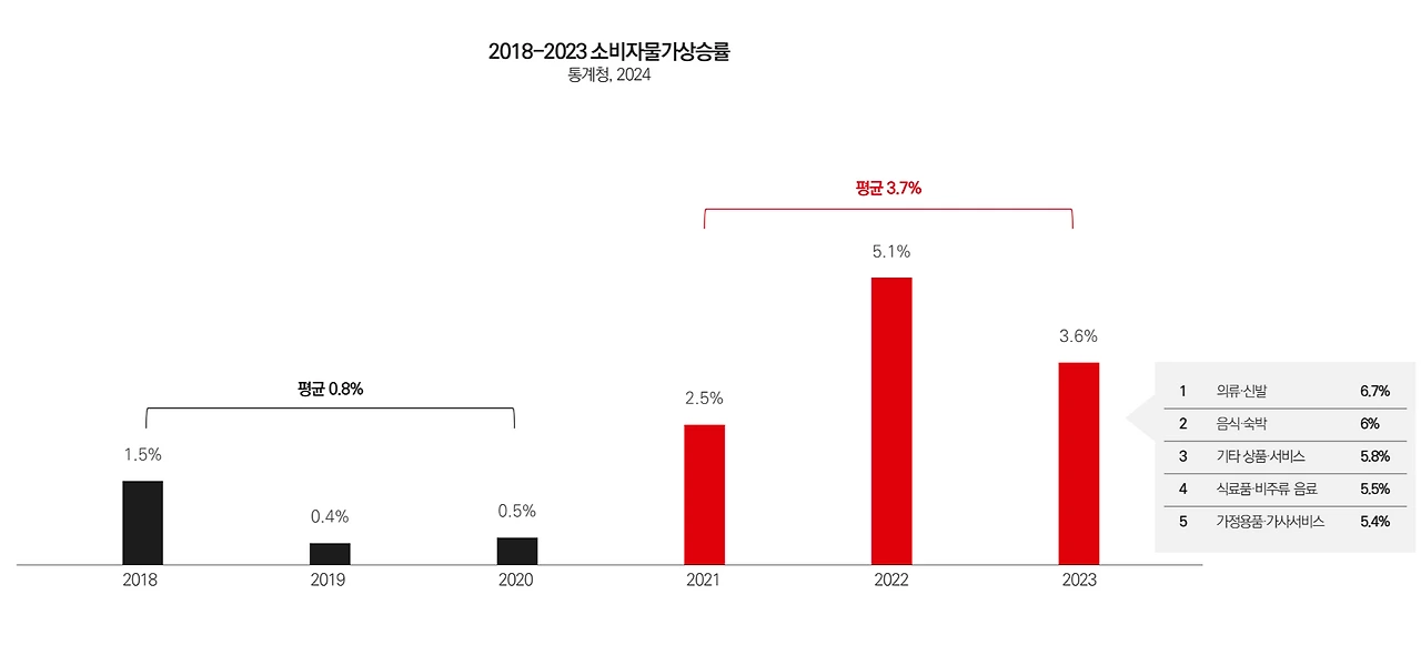 높은 물가 오름세가 계속되며 소비자의 부담이 증가하고 있습니다. 평균 1% 내외였던 물가 상승률이 최근 3년 동안 4%에 가까이 상승했기 때문입니다. 특히 이를 주도하는 요인으로는 일상에서 입고, 먹고, 자는 것인 의식주 품목들과 연관되어 있어 소비 심리는 더욱 위축되는 모습입니다. 물가 부담이 높아질수록 소비자들은 상품의 여러 요소를 따져보기 시작했고, 특히 조금이라도 더 저렴한 초저가 제품에 관심을 기울이고 있습니다.