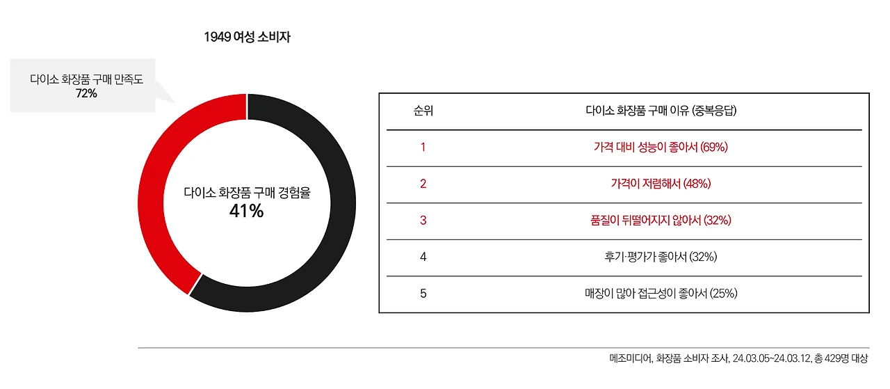 다이소에서 가성비 화장품 구매, 만족도는 72%