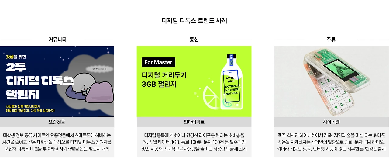 온라인상에서 스크린타임을 인증하는 디지털 디톡스 관련 챌린지가 유행하고, 기업들 또한 도파밍 자제력을 돕는 서비스와 상품을 선보이는 추세