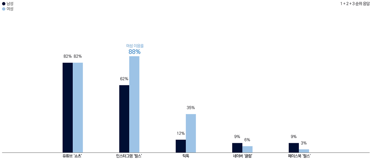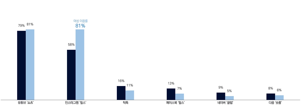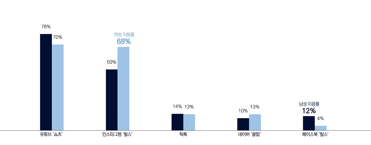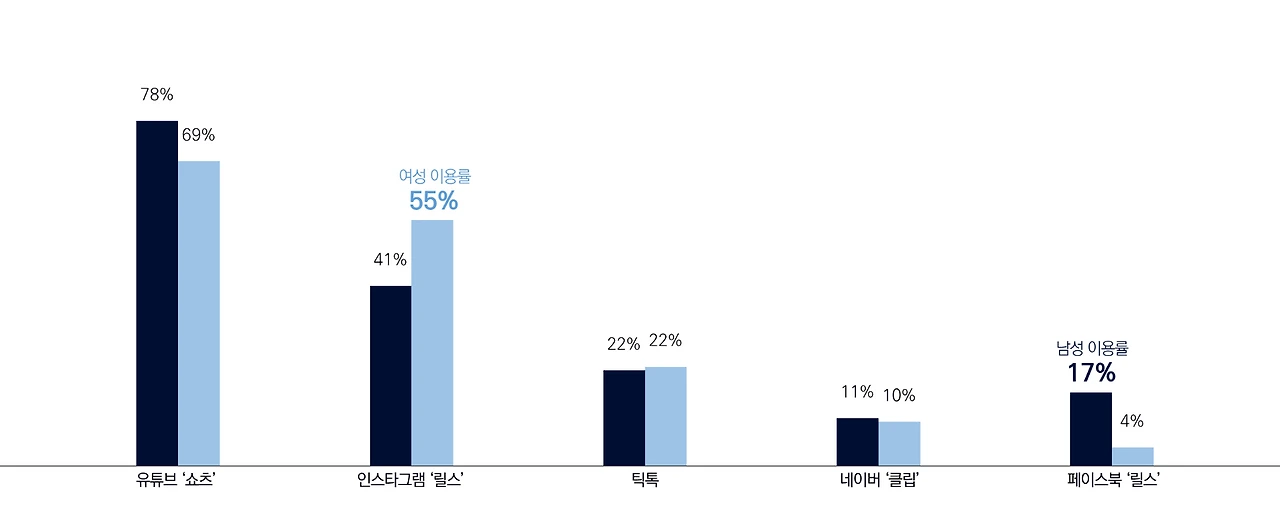 특히 인스타그램 ‘릴스’는 여성 이용률이 높았으며,