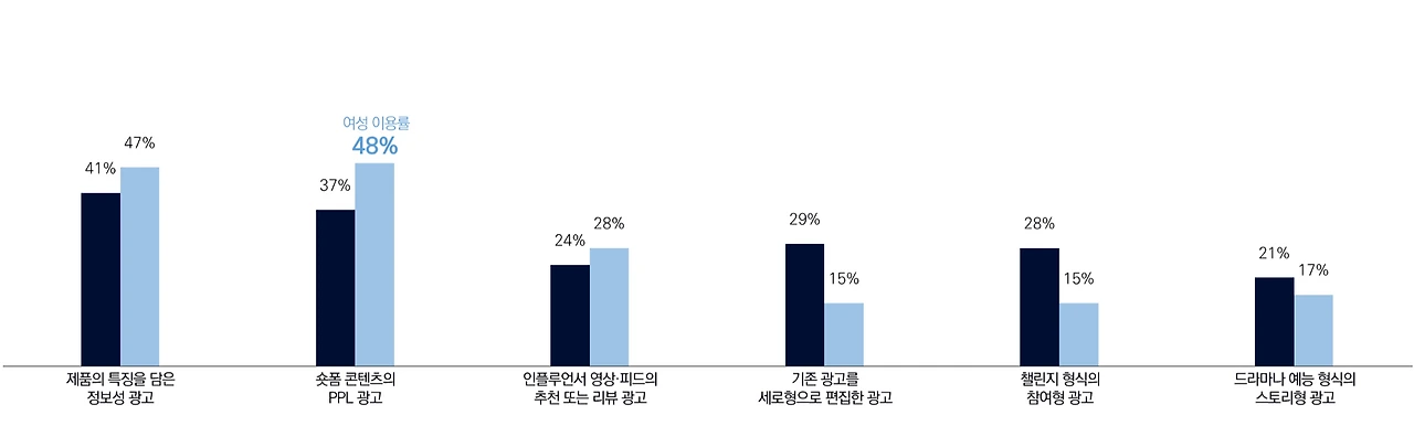 드라마나 예능 형식의 스토리형 광고는 여성에게 특히 효과적입니다.