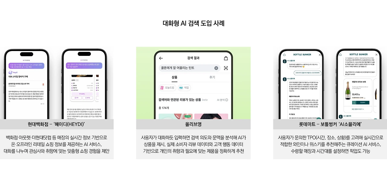 특히 대화형 AI는 고객이 원하는 상품을 찾는 데 소비되는 시간을 단축시키고, 취향 맞춤 추천, 리뷰 요약 등 구매 의사결정을 도와 매출 증진 기대