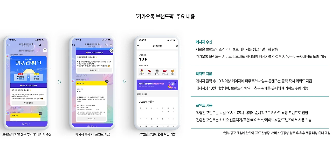 친구 추가 한 ‘카카오톡 브랜드픽’ 채널이 발송한 메시지 속 광고 페이지로 이동 후 10초 이상 머무르면 쇼핑 포인트 등 리워드가 지급되는 방식