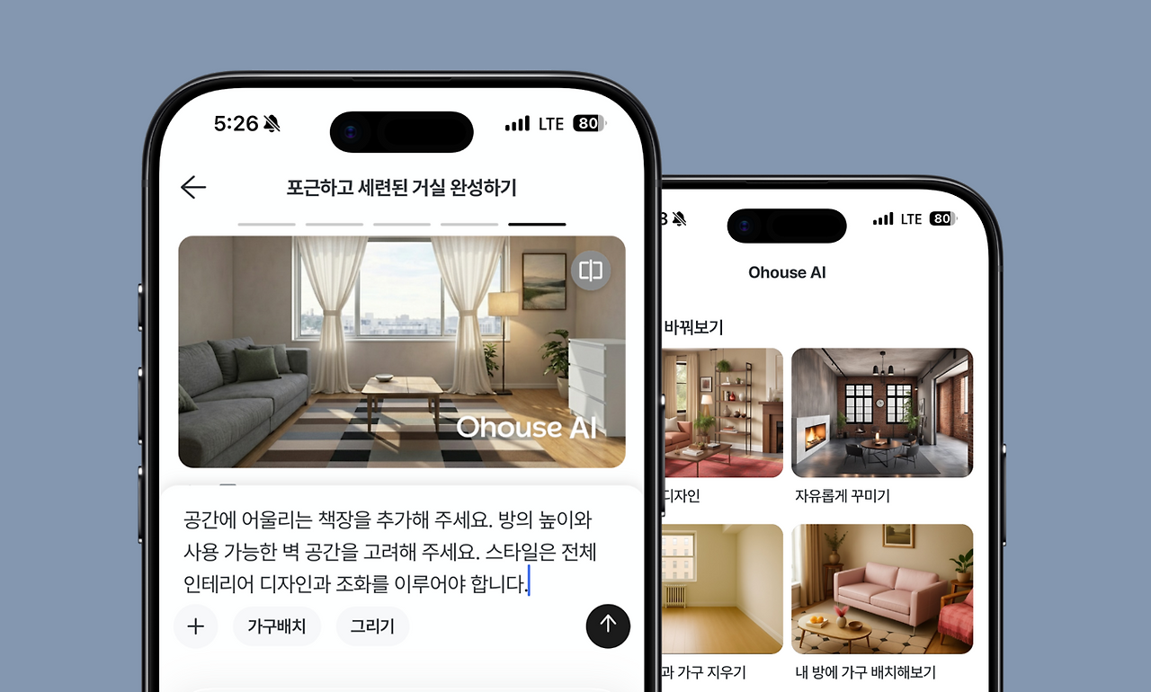 이용자가 집 사진을 업로드하고 분위기, 가구, 소품 등 원하는 인테리어 아이디어를 자연어로 입력하면 AI가 오늘의집에 입점된 제품들을 활용해 인테리어 예시를 보여주고 제품을 제안