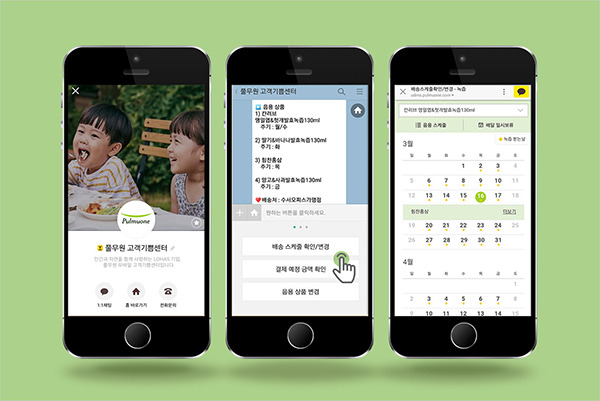 기존 고객뿐 아니라 일반 고객들도 스마트 기기만 있으면 배달 제품 주문조회‧변경, 무료 체험 신청, 배달 가맹점 찾기 등 24시간 일대일 상담도 가능하다.