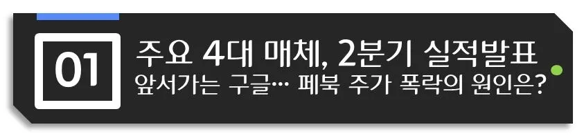 국내 디지털 광고 업계를 주도하는 4인방 네이버·카카오·구글·페이스북이 2018년 2분기 실적에서 희비가 엇갈렸다. 국내 주요 포털사인 카카오와 네이버 모두 매출은 늘어났으나 신사업 추진과 연구개발비 등 투자 비용 증가로 인해 영업이익은 감소한 것으로 나타났다. 글로벌 시장을 보면 구글(알파벳)의 2분기 매출이 유튜브를 앞세우며 시장 기대치를 넘어선 반면 페이스북은 매출 상승에도 불구하고 개인정보 유출과 사용자 감소세 등으로 기대 이하라는 평가를 받으며 주가가 급감했다.