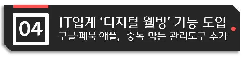한편, 페이스북도 지난달 초 “페이스북과 인스타그램에서 보내는 시간을 이용자들이 스스로 효과적으로 관리할 수 있도록 돕는 기능을 모바일 앱에 도입한다”라고 발표했다. 앱에서 보낸 시간을 하루 또는 주간 단위로 이용자들에게 알려줌으로써 이용자 스스로 과다 사용 여부를 판단하도록 하겠다는 것이다. 애플의 경우, 최근 공개한 최신 아이폰 운영체제 iOS12에 특정 앱의 하루 사용 한도를 설정할 수 있게 한 ‘앱 리미츠’ 기능, 1주일 동안 앱을 얼마나 사용했는지 보여주는 ‘위클리 서머리’ 기능, 부모가 아이들이 잠자리에 들 시간에 아이폰 작동을 멈추게 하는 ‘다운타임’ 기능을 적용한 바 있다.