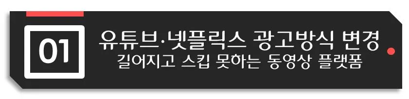 유튜브와 넷플릭스가 광고 방식에 변화를 시도한다. 유튜브는 자사 테크팀의 동영상 채널 '크리에이터 인사이더'를 통해 스킵이 불가능한 15초, 20초의 광고 상품을 전체 콘텐츠 크리에이터에게 확대 적용한다고 밝혔다. 그동안 이 같은 상품은 일부 콘텐츠 크리에이터들에 한해 적용되었다. 5초 이후에 스킵이 가능한 광고가 일반적이었던 유튜브에 적지 않은 변화가 야기될 것으로 보인다.