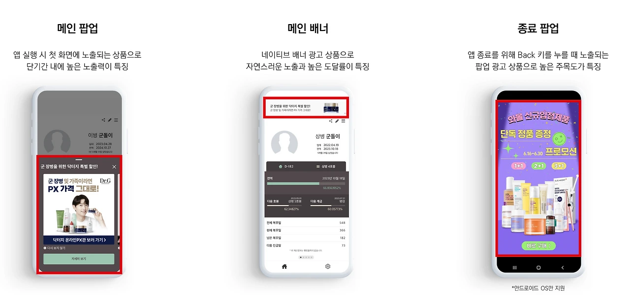 현역 군인 및 20대 남성 유저 타겟 광고에 효과적