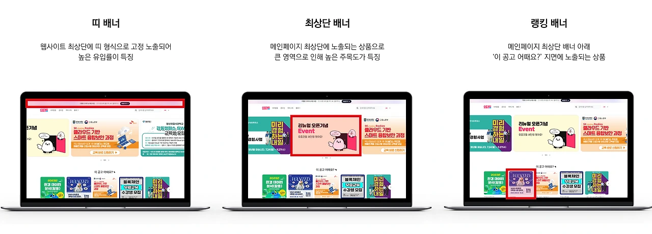 다양한 웹페이지 배너 상품을 보유하고 있으며 MZ세대 타겟 캠페인에 활용 가능