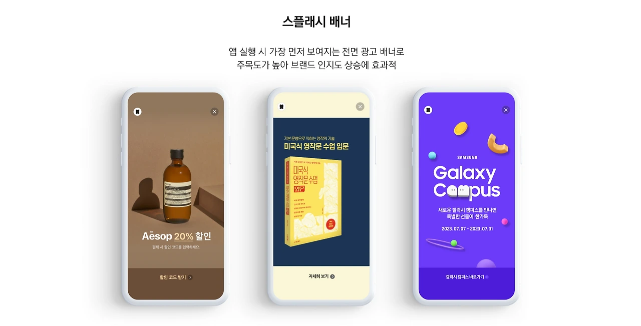 이용자의 98%가 자기 관리에 관심이 많은 1030세대로 건강, 금융, 도서 등 다양한 업종의 캠페인에 활용 가능