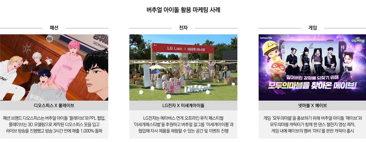 AI 기술이 발달하고 버추얼 캐릭터를 구현하는 기술 또한 정교해지는 만큼 버추얼 아이돌 시장은 더욱 커질 것이며 브랜드와의 협업 사례도 증가할 것