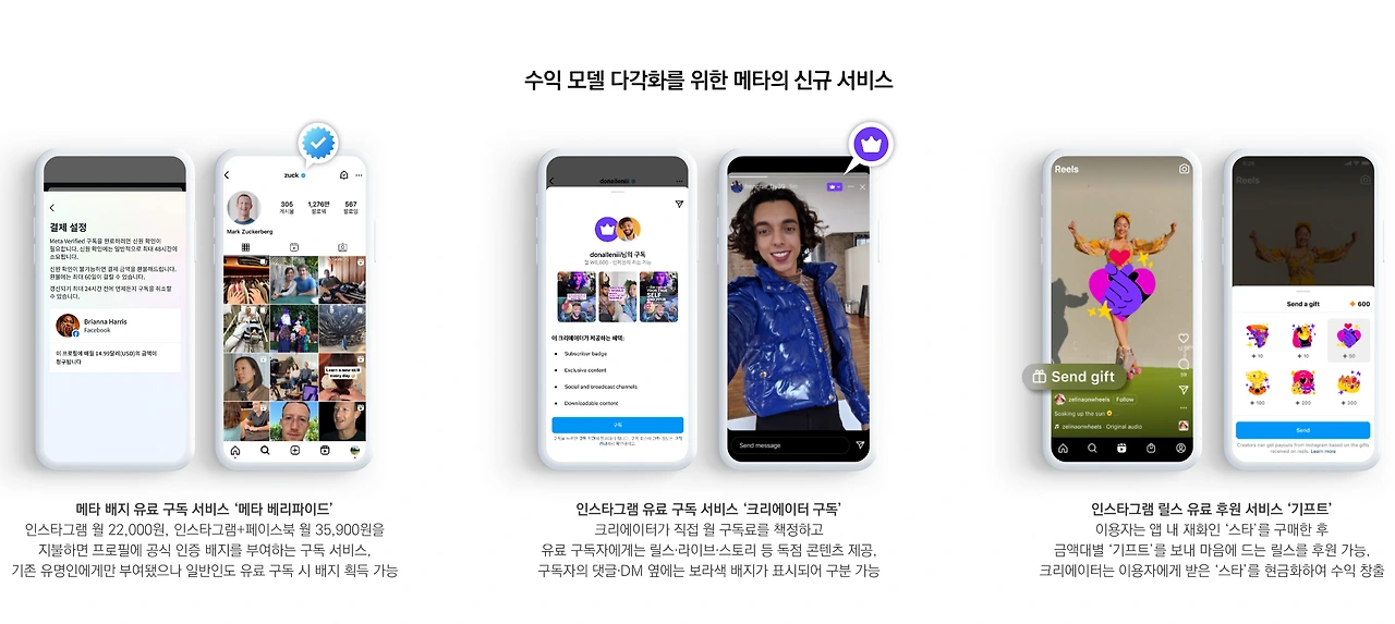 메타는 최근 ‘유료 구독 서비스’와 ‘크리에이터 수익화 서비스’를 도입