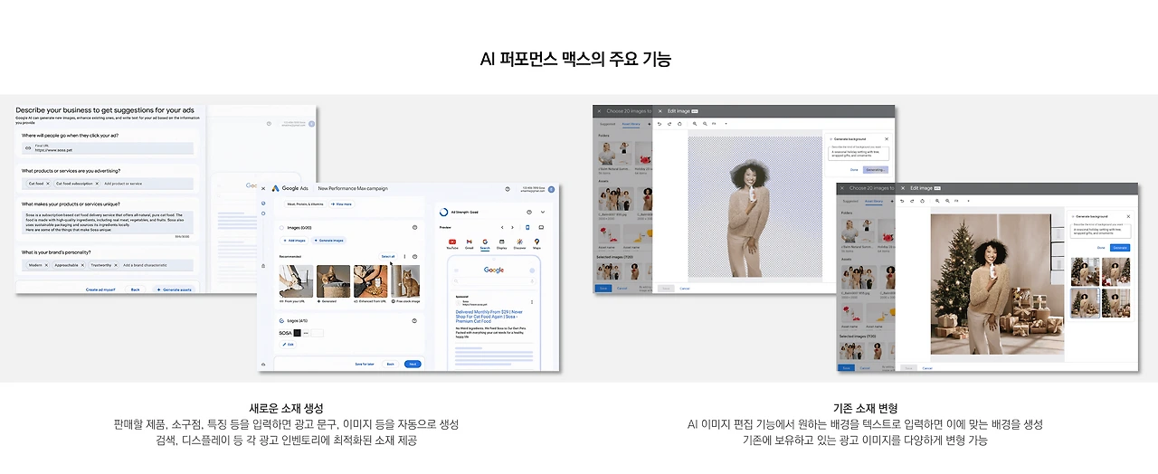 구글은 미국 광고주를 대상으로 퍼포먼스 맥스에 생성형 AI를 적용하여 원하는 내용을 입력하면 광고 소재를 자동으로 생성하는 기능을 추가
