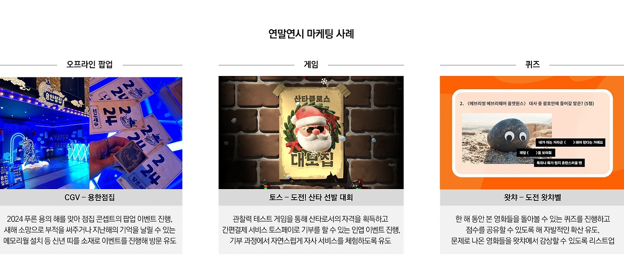 연말연시에 걸맞은 콘셉트와 오프라인 팝업, 게임, 퀴즈 등 소비자가 직접 참여할 수 있는 이벤트를 통해 특별한 재미 요소를 제공