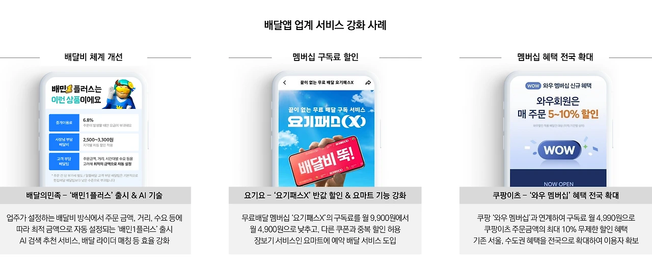배달앱 업계는 고객 이탈 방지를 위해 배달비 부담을 완화하는 등 고객 혜택 및 고객 편의성을 강화한 신규 서비스를 연이어 출시
