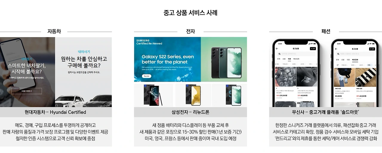 브랜드 인지도를 갖춘 기업들이 가격, 품질, 안전성 등 소비자의 신뢰를 충족시킬 수 있는 중고 상품 서비스 사업을 활발히 전개