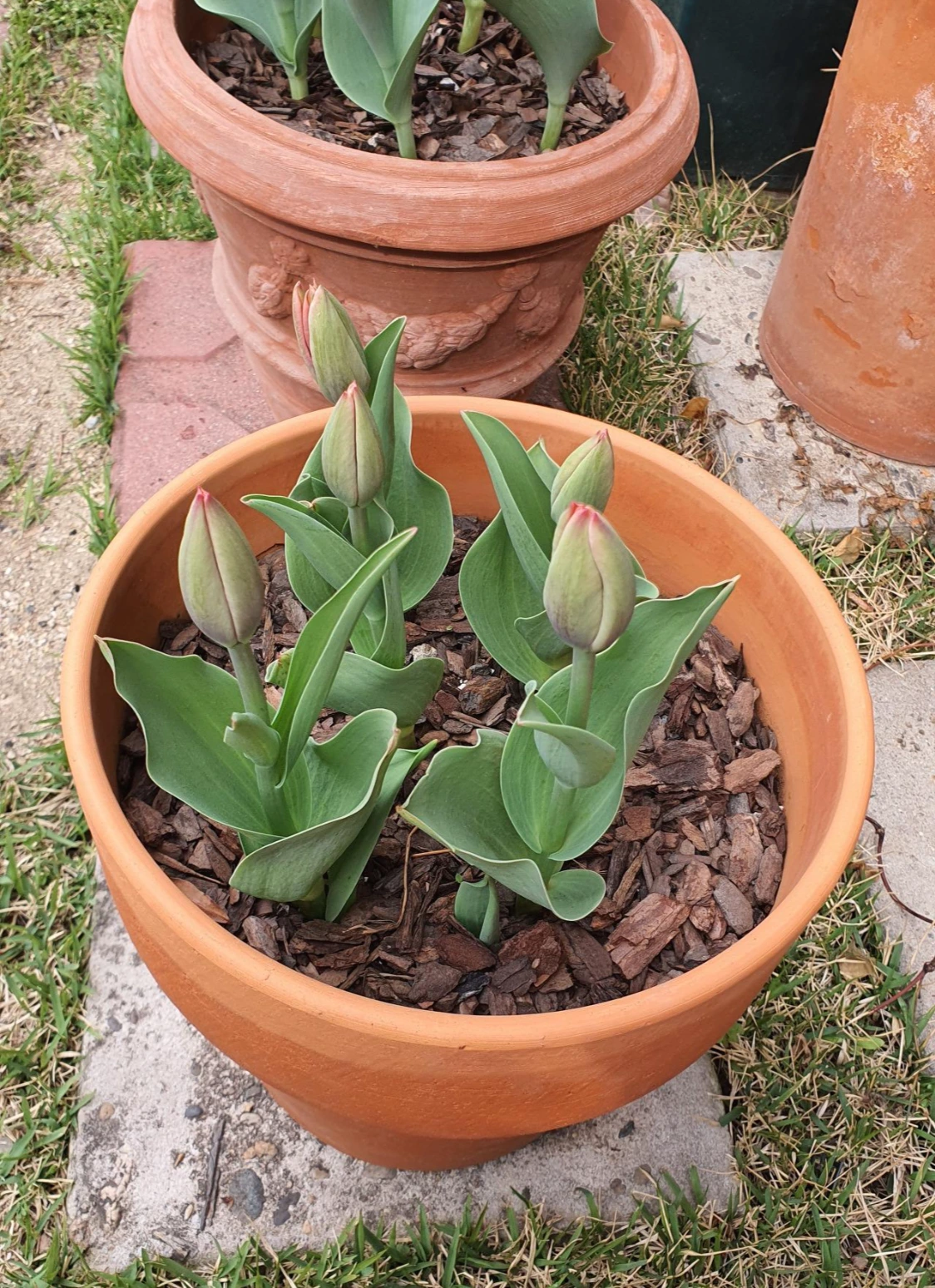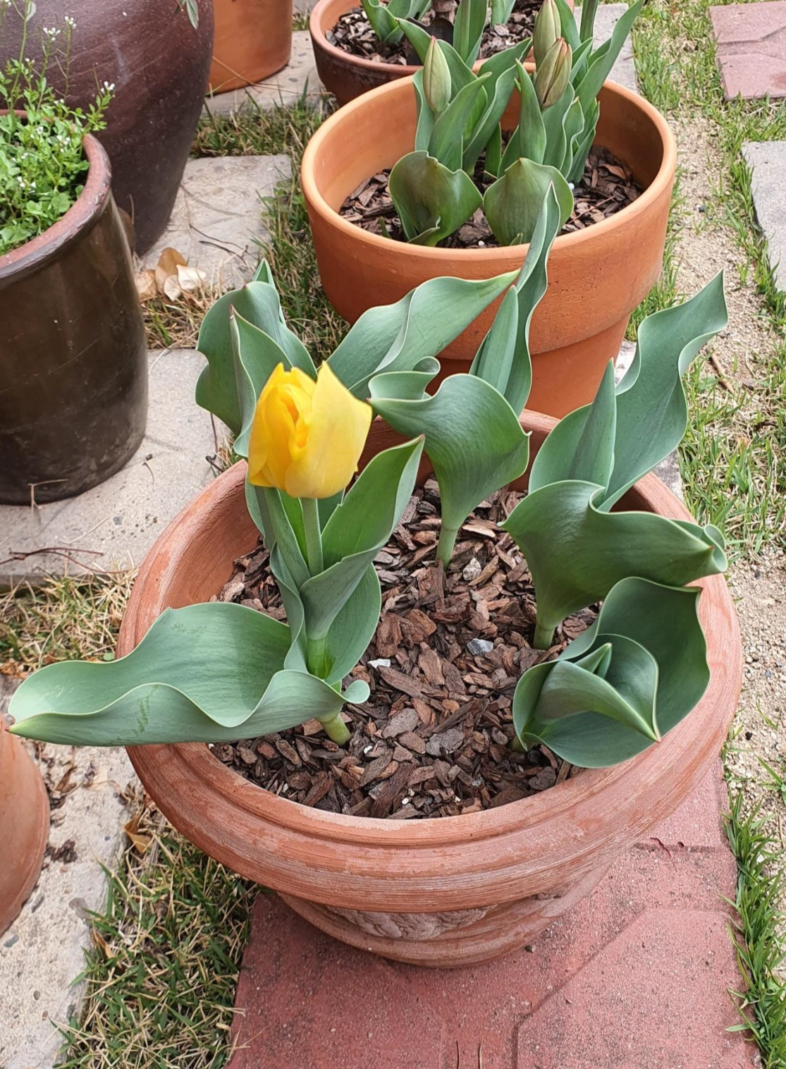 튤립은 사실 꽃이 피고 나면 크게 볼거리가 없다. 그래서 꽃이 질 때쯤 줄기를 잘라주고 뿌리는 캐내어 양파 주머니 같은데 넣어서 서늘한 곳에 건조를 시킨다. 그러고 나서 봄이 시작되기 전 다시 흙에 심어주면 그 사이 저렇게 자라나 다시 꽃을 피워준다.