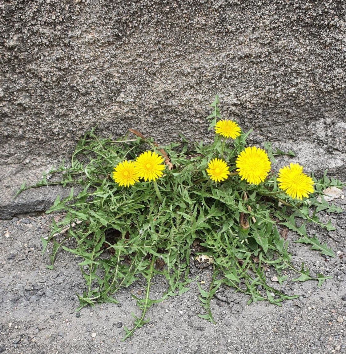 코로나 이후 골목을 걸을 일이 거의 없었다. 가급적 사람들과 접촉을 덜 하고 싶어 피해 다닌 이유도 있었다. 오늘 골목을 지나가야 할 일이 있어 걷다 보니 눈에 확 들어오는 아이가 하나 있었다. 노랗게 빛을 발하고 있는 민들레 한 가족이었다. 포장된 골목이라 흙도 없는데 벽과 포장도로 사이의 작은 틈에서 저리도 튼튼하게 성장해서는 꽃을 활짝 피워 놓았다.