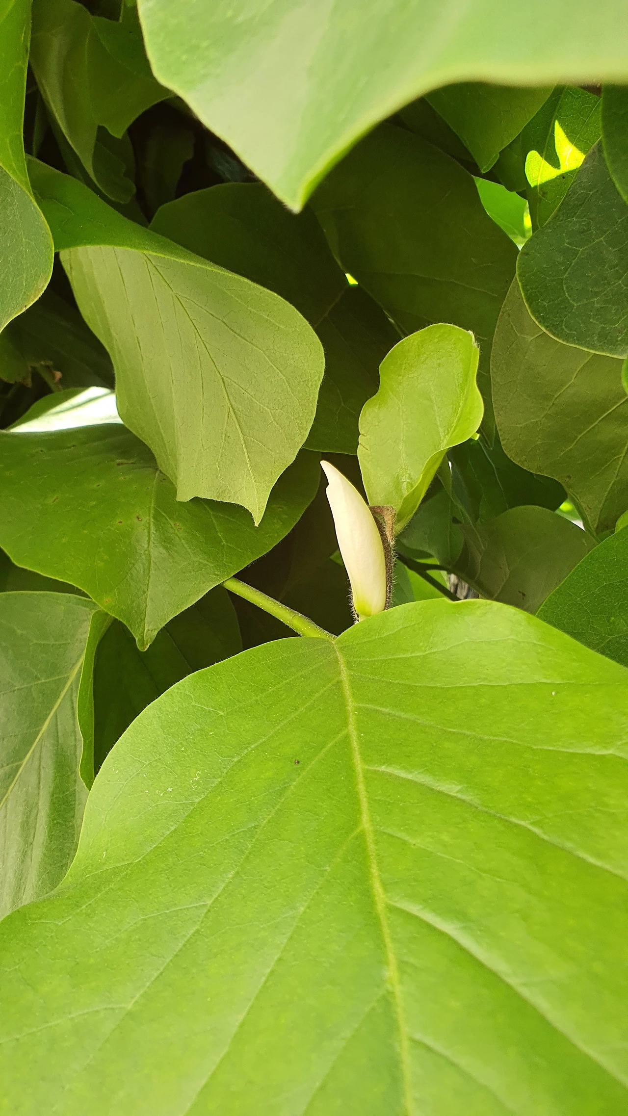 그렇게 꽃을 피웠던 기억이 선명하기만 한데, 오늘 내 눈에 들어온 목련꽃은 도저히 이해가 되지 않는 현상이다. 나뭇잎 사이사이 곳곳에 흰 꽃봉오리들이 매달려 있다. 줄기가 잘리고 워낙에 많은 잎들이 달려있어 숨구멍도 없을 정도라 밖에서는 잘 보이지는 않지만 잎을 들춰 찾아보니 한두 개가 아니었다.