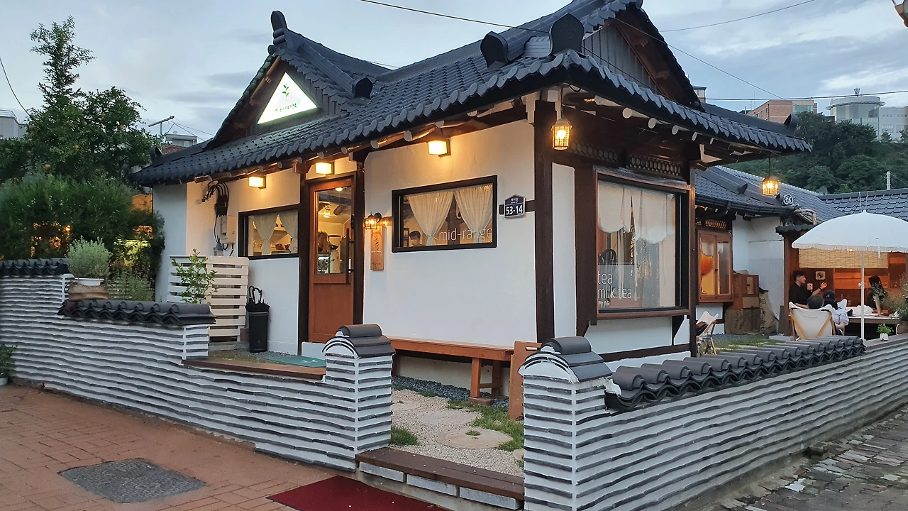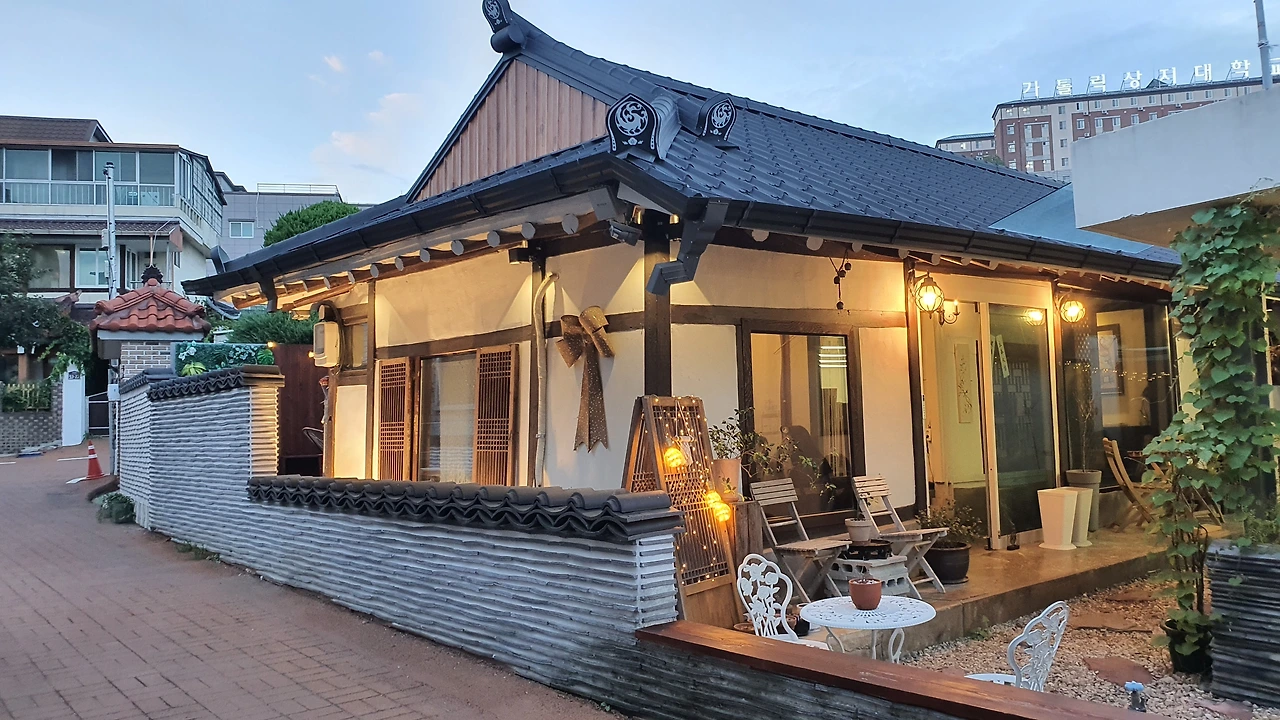 "한옥들을 새로 리모델링해서 카페로 바꿔놨어!"