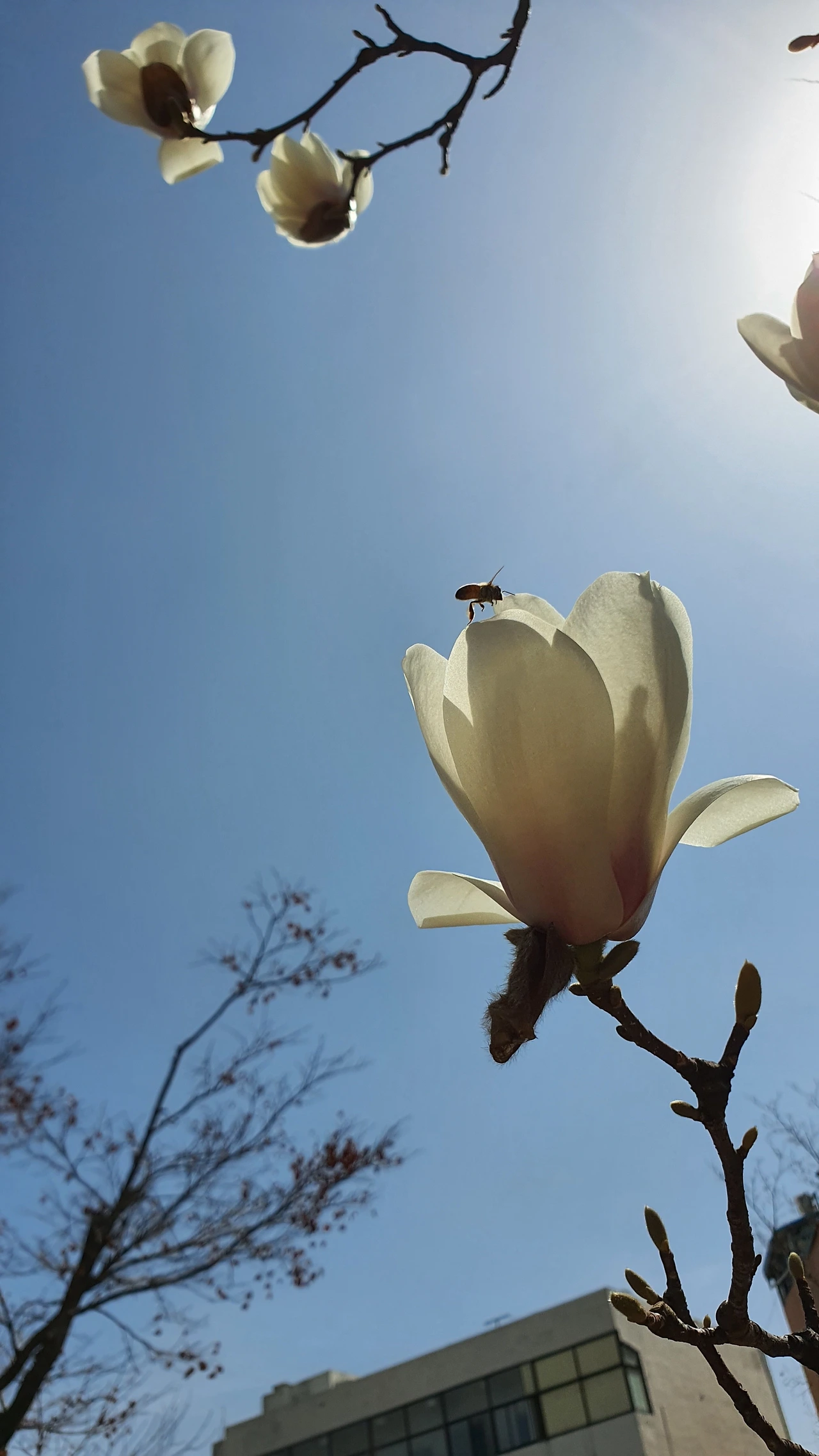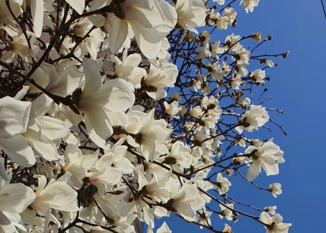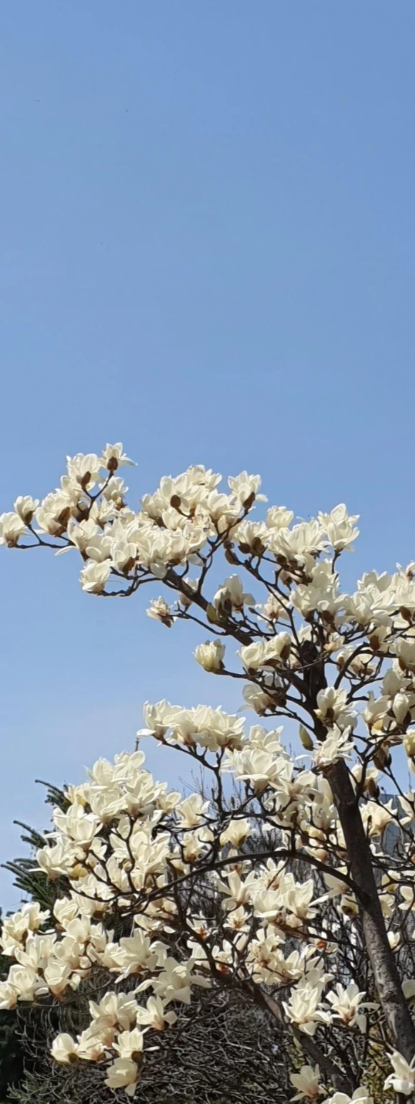어느새 하얀 목련이 활짝 피었다. 구름 한 점 없는 파란 하늘에 하얀 목련은 너무도 아름다운 모습이다. 목련의 환한 꽃과 같이 지인의 집에도 행복이 끊임없이 만개하는 시작이 되기를 바라본다.