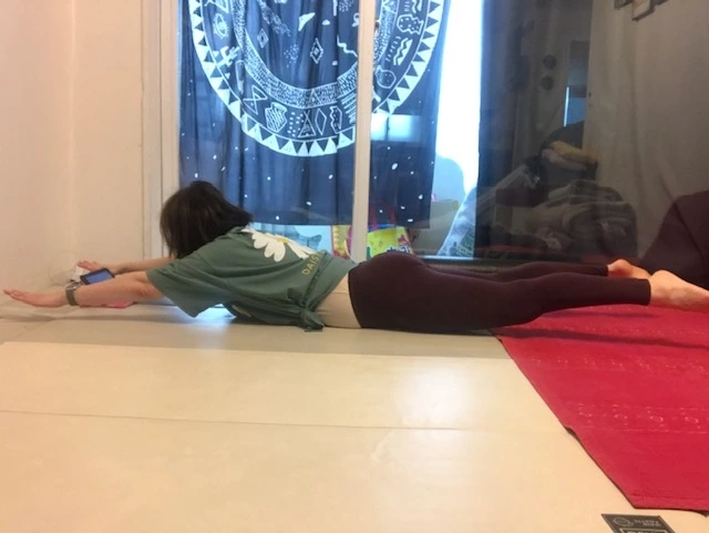 슈퍼맨 동작 - 영상 속 코치님은 팔과 다리가 높이 올라간다 것. 나는 최선을 다했지만 보잘것없다는 것이 함정인 것 같다.