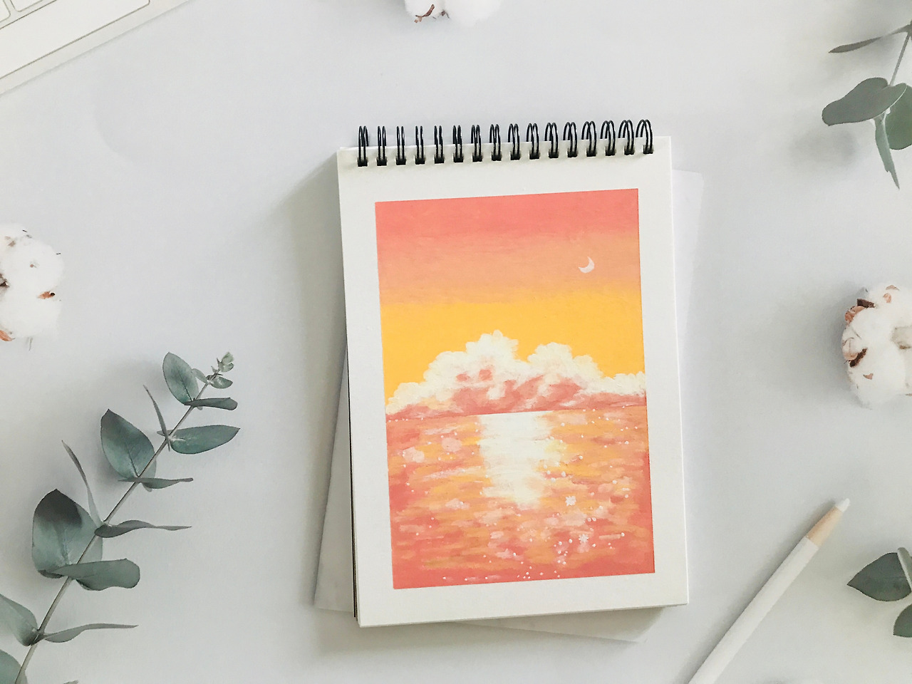 핑크빛 바다를 그렸어요. 쉬워보여서 그렸는데 쉽지 않네요. 조금 더 반짝반짝이게 표현하고 싶었는데 뭉게져서 최대한 안보이게 노력을 했습니다. 휴~~