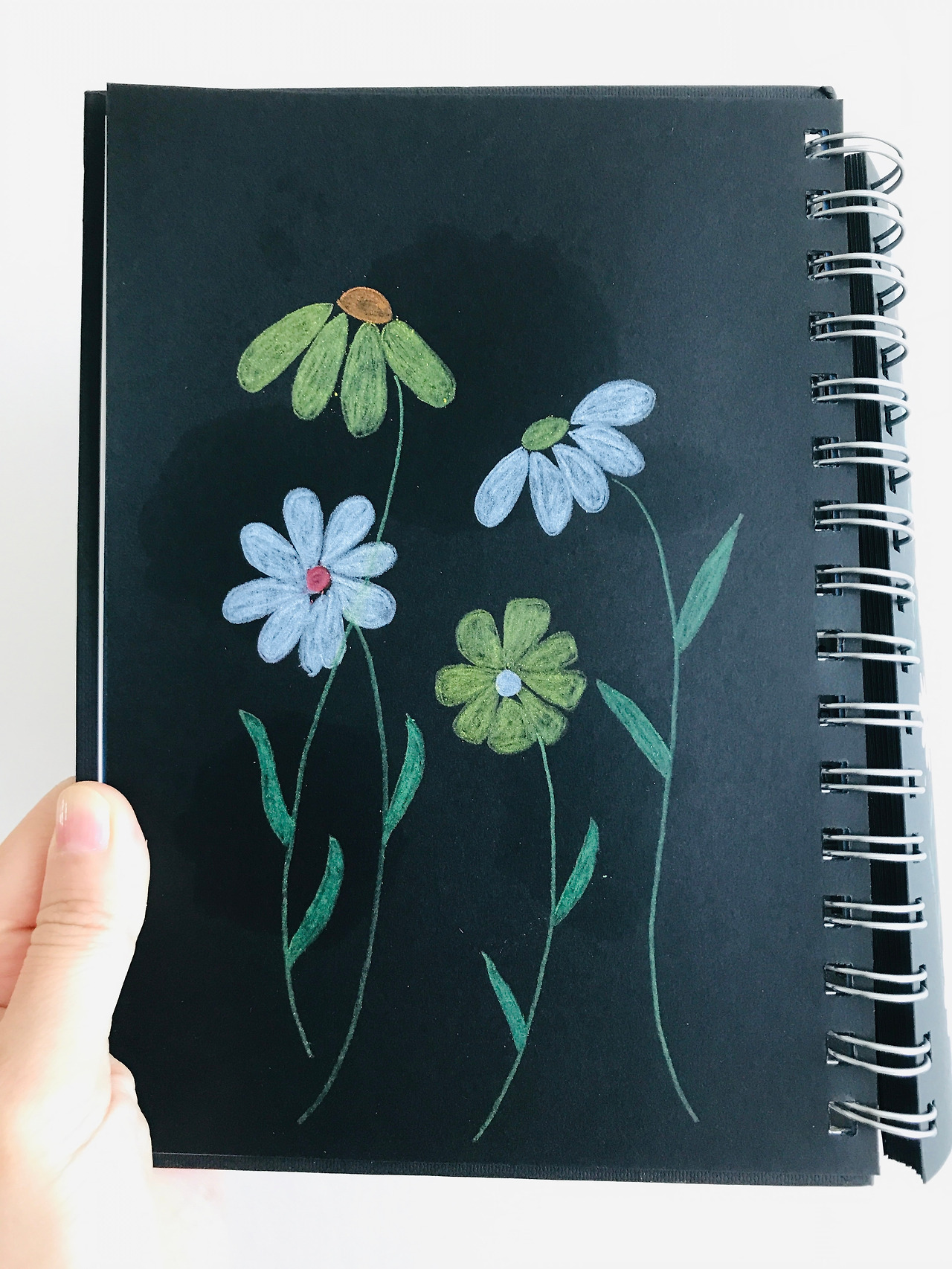오늘은 집에 흔히 있고 잘 사용하지 않는 물감과 색연필로 그림을 그려봤습니다.