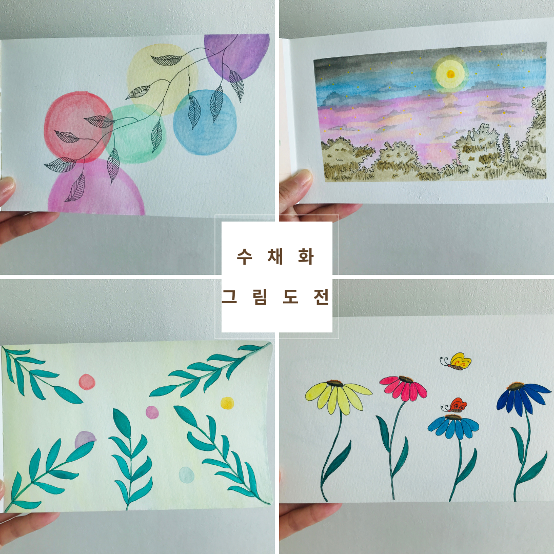 수채화 그림에 도전을 해봤는데 붓에 익숙해져야 잘 그릴 수 있겠더라고요. 그래서 그동안 수채화 그림 간단하게 하려고 밑그림을 그려서 채색을 하면 될 것 같았어요.