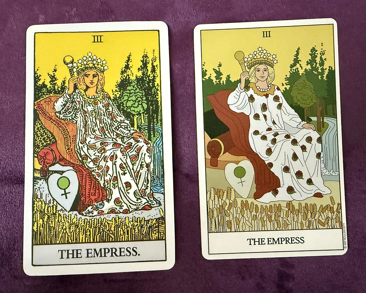 책상 위에 놓인 두 장의 The Empress를 다시 본다. 유니버셜 웨이트의 당당한 풍요와 소울웨이트의 부드러운 포용.