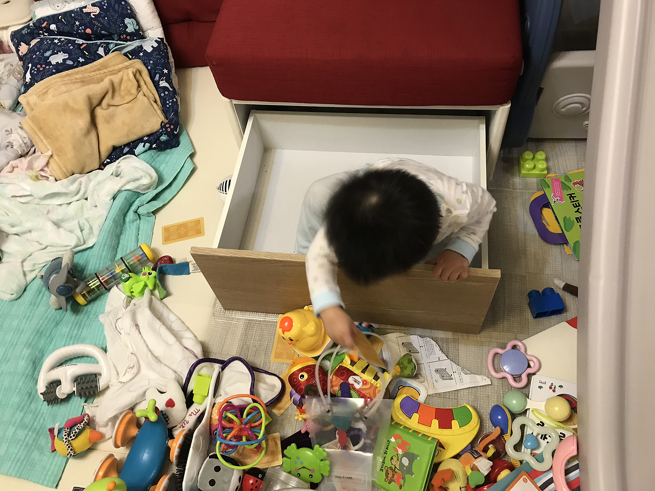 아이들이 노는 것은 좋으나 오랜 시간 가지고 놀지는 않았습니다. 그래서 방치되어 있는 장난감들을 중간중간 치우게 됩니다.