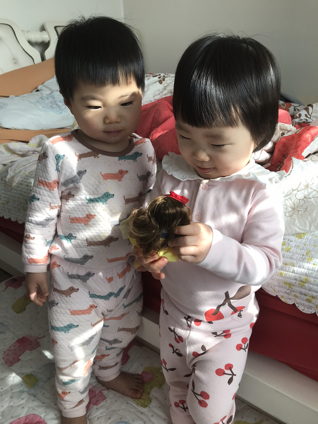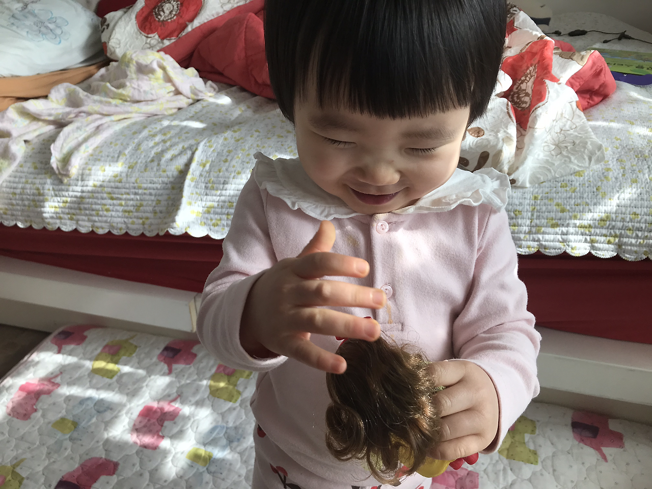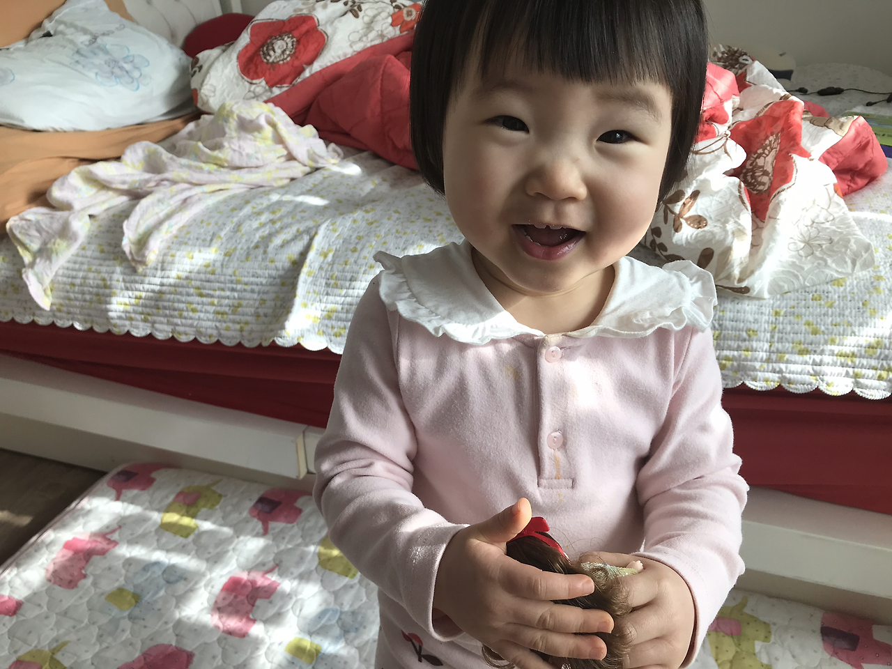 아이들이 20개월 때는 보다 못해서 서로가 가지고 노는 놀잇감이 다르면 되지 않을까 생각해서 첫째에게 인형을 사줬습니다.