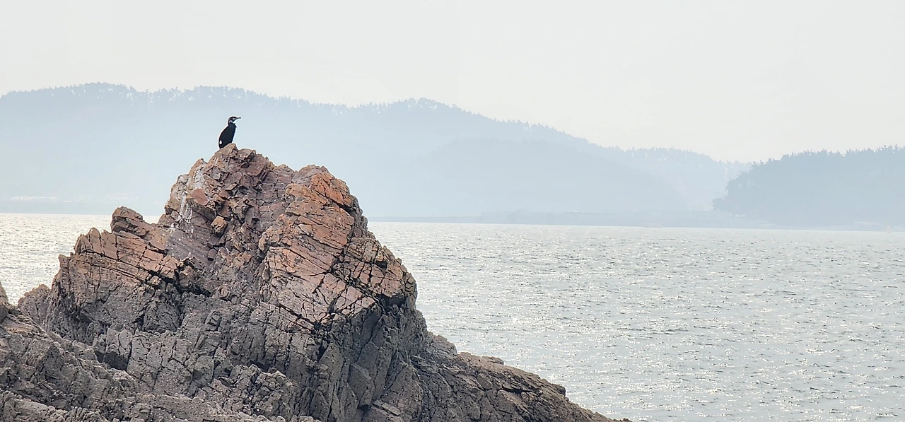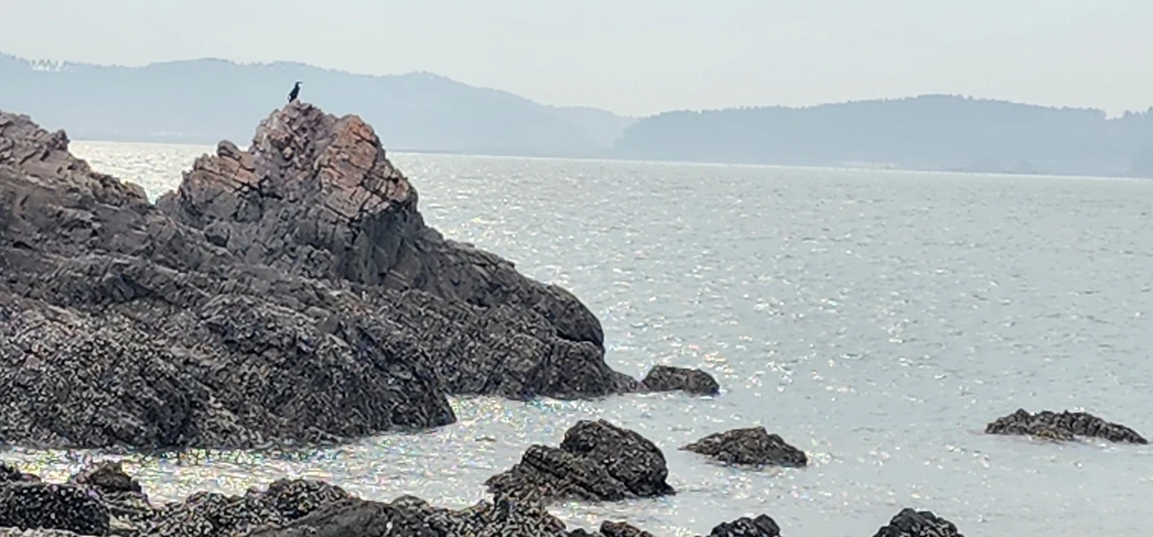 잠시 바위에 앉아 휴식을 취했다. 주변은 남편과 나 둘뿐 아무도 없었고 적막함만 가득 찼다. 무심코 바다 쪽으로 고개를 돌리니 바위 끝에 갈매기 한 마리가 조용히 바다를 바라보고 있었다. 그 모습이 내게는 ‘아, 오늘도 고단한 하루가 끝났네. 이제 좀 쉬어야지...’ 하고 안도하는 것 같아 보였다. 새의 시선을 따라 나도 함께 바다를 바라보았다. 바다는 평화로웠고 윤슬이 물결 따라 흔들리며 반짝거렸다. 따스한 햇볕을 받으며 바위에 조용히 앉아 있으니 잡념이 사라지고 맘이 편안해졌다. 행복한 고요의 시간이었다.