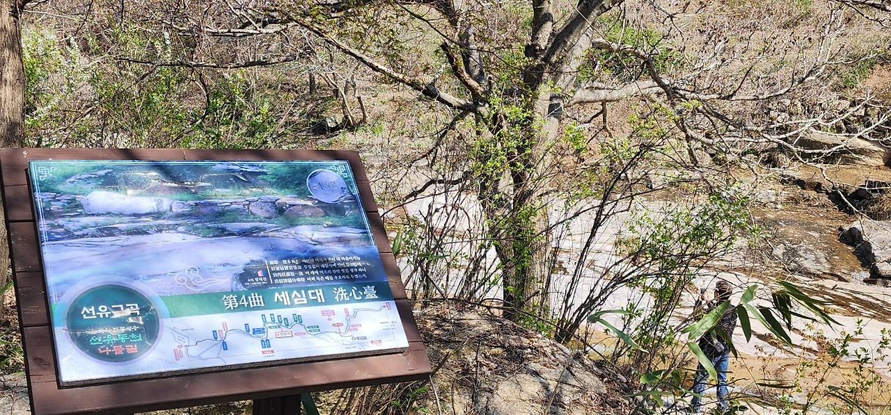 이 구곡을 표현한 시가 적혀 있어 이해를 도와주었다. 게시판에 써진 시를 먼저 읽고 사진을 찍었다. 그리고 계곡에 내려가 풍경을 보면서 시를 되새겨 보는 느낌이 좋았다.
