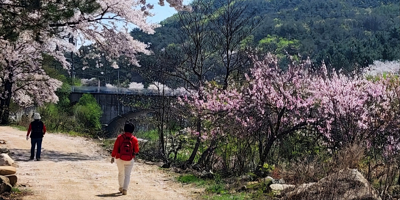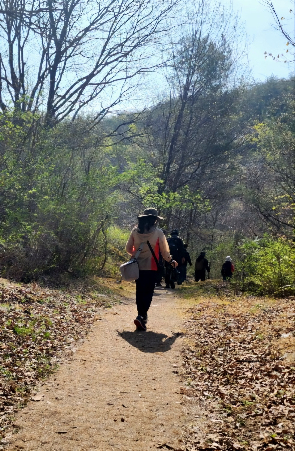 걷는 길은 힘들지 않았다. 봄을 맞이하는 연두색 나뭇잎들이 싱그러웠다. 길가에는 노란 산수유와 겹벚꽃이 활짝 피어 있었고 색들이 곱게 어우러져 화사함으로 가득 찼다.
