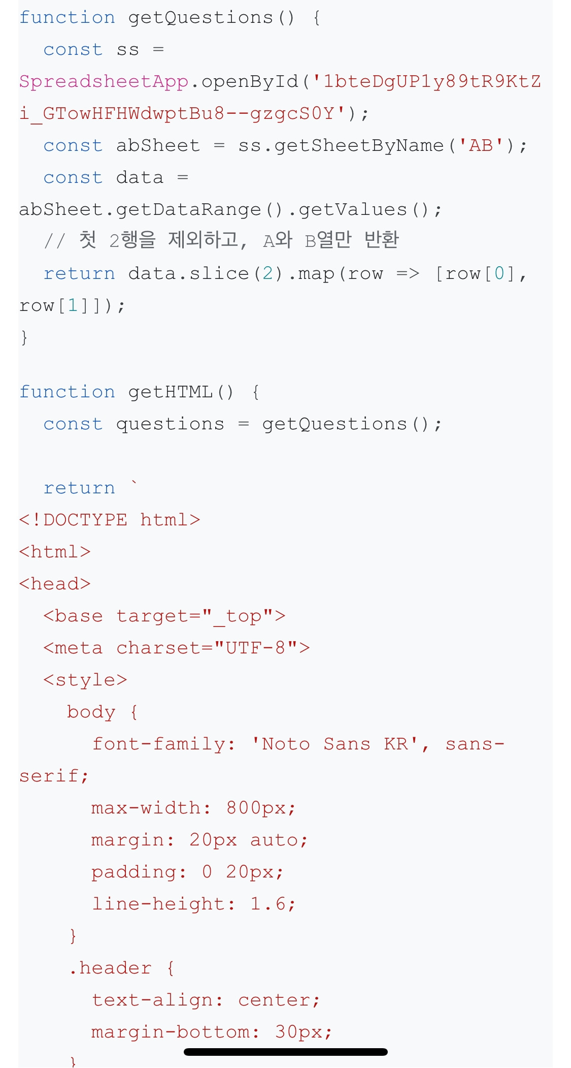 앱스스크립트로 코드 만들다가 갑자기 든 생각.