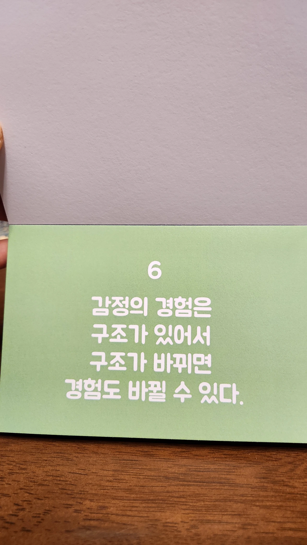 NLP 기법 전혀 몰라도 이 전제 문장이 주는 울림과 지혜가 있거든요. 코칭,상담,모임 등에서 관계구축을 위한 아이스 브레이킹을 할 때 안성맞춤이에요. 엽서북 형태로 되어 있어서 휴대하고 다니면서 누군가에게 힘이 되겠다싶을 때 한 장씩 뜯어서 선물로 줘도 좋구요.