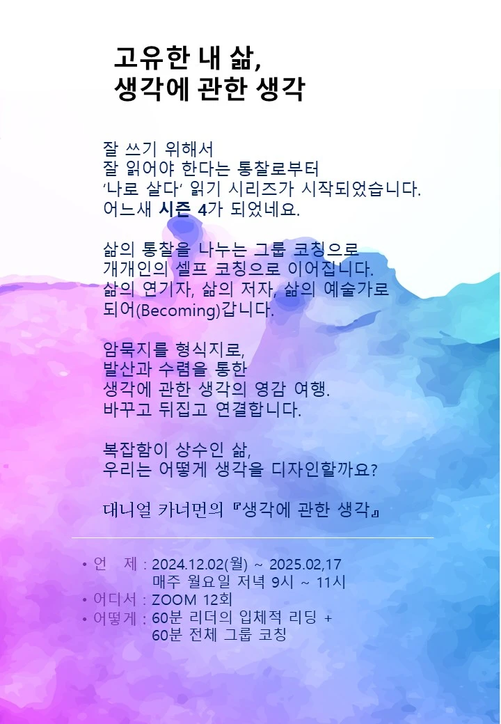 [3개월 벽돌책 읽기 그룹코칭 시즌4 : <생각에 관한 생각>으로 생각의 선택자 되기]